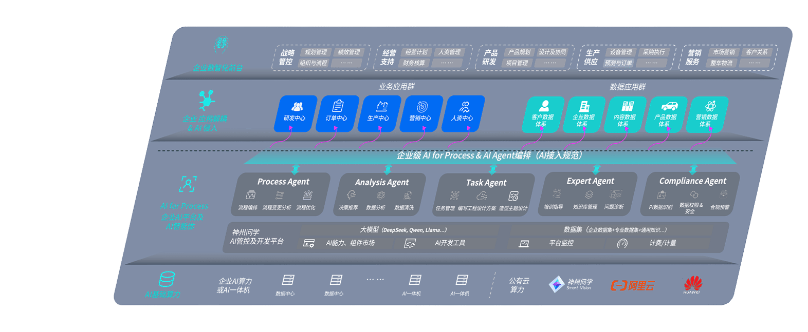 端到端的一站式AI工作空间深度融合了从企业战略规划到日常经营的全流程业务板块,,定向解决车企内部领域多、、部门多、、、、链条长、、、、场景碎片化等难题,,,支持车企快速构建以AI为核心的生产力写作体系,,,实现任务执行与AI能力的无缝集成与交互